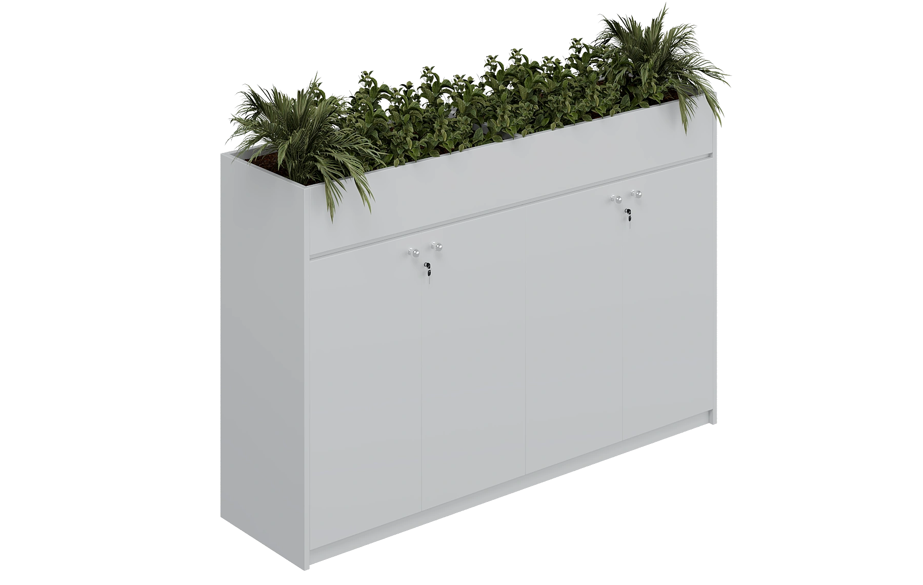 White (Low Height) Four-Door Top Planter Box Cabinet